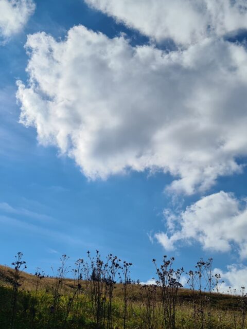 Parking na Przełęczy Glinne (809 m n.p.m.) był prawie pełny, ale jak się człowiek uprze, to auto się gdzieś wciśnie (byle z głową i nie łamiąc przepisów). Pogoda wymarzona: ładne niebo z fotogenicznymi chmurami, lekki wiatr, 20 stopni. Gdyby wszystkie wejścia na górę miały taką oprawę…