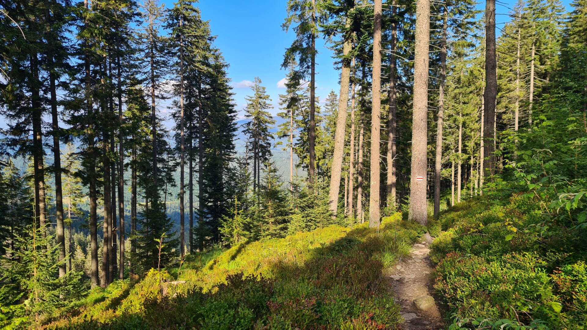 🔹 Ekspozycja: znikoma. Cała trasa prowadzi przez szerokie, bezpieczne ścieżki, głównie wśród lasów i hal. Jedynie na samym szczycie Pilska rozpościerają się szerokie widoki, ale nie towarzyszą im żadne przepaście ani wąskie przejścia.