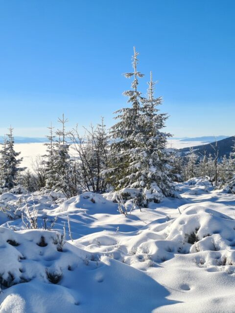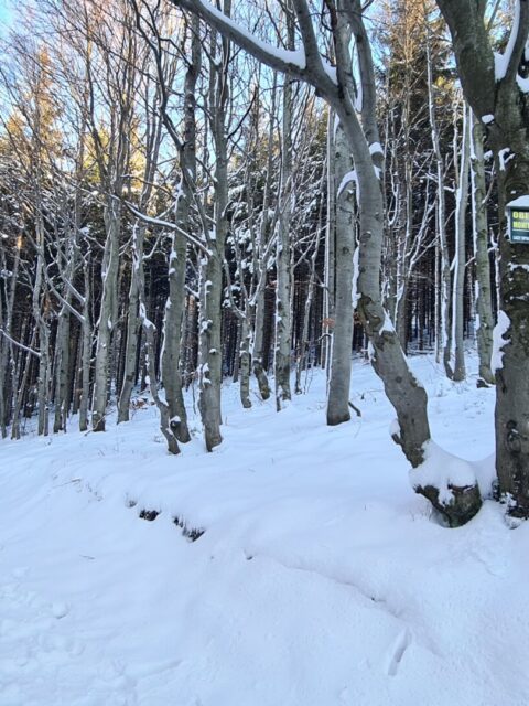 📝 Na marginesie szlaku – To zimowa wędrówka z duszą – spokojna, malownicza, ze wstrząsającym momentem zadumy przy miejscu katastrofy lotniczej z 1969 roku. Polica nie potrzebuje dramatyzmu, by zostawić ślad w głowie – wystarczy ten widok z hali, cisza lasu i tabliczka z nazwiskiem kogoś, kto nie wrócił z podróży.