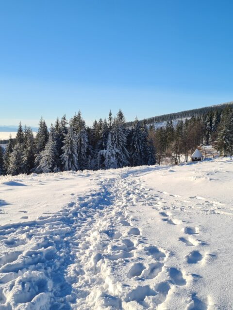 Dla osoby z lękiem wysokości to jedna z najbardziej komfortowych tras, jakie pokonałem zimą. Całkowity brak ekspozycji, spokojne podejścia i leśny charakter szlaku pozwalają w pełni skupić się na marszu, historii i pięknych widokach. Idealny wybór na psychiczny reset.