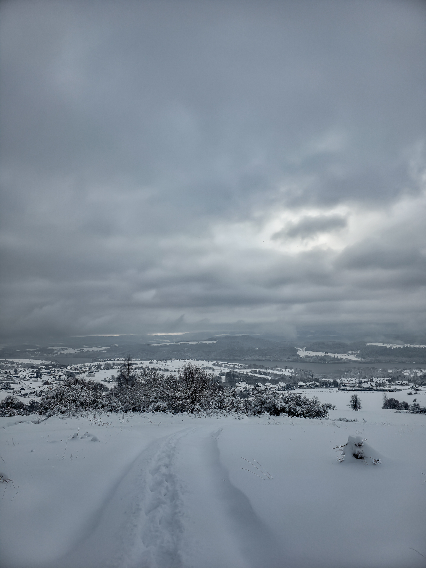 Zimowy zielony szlak na Kudów z widokiem na Jezioro Czorsztyńskie