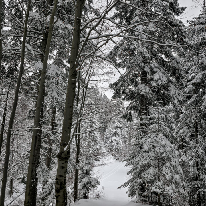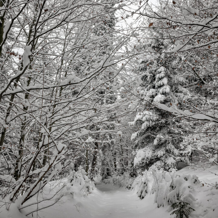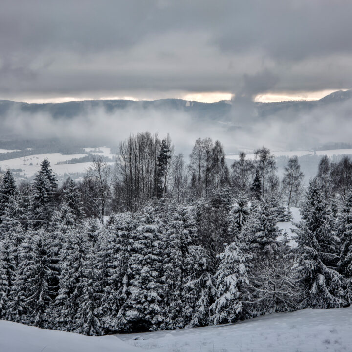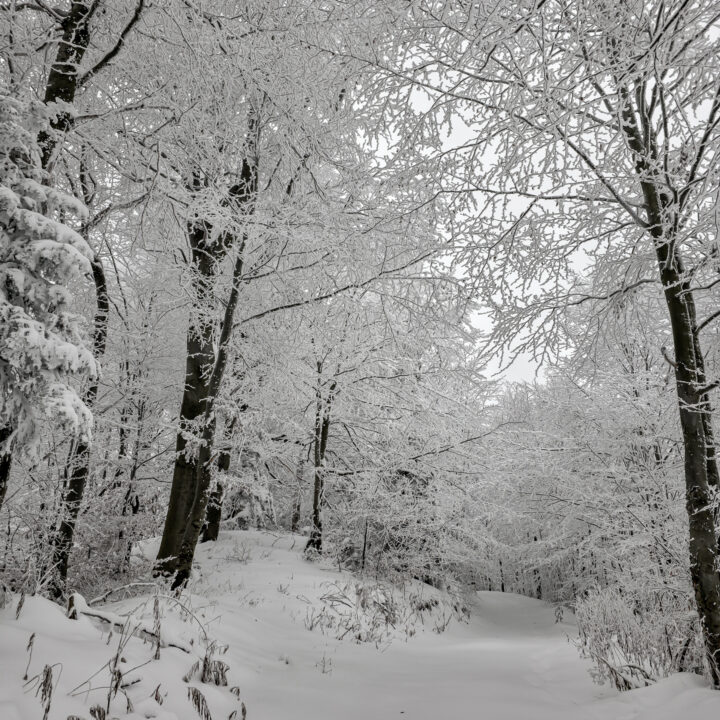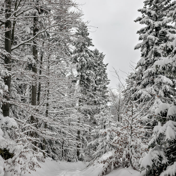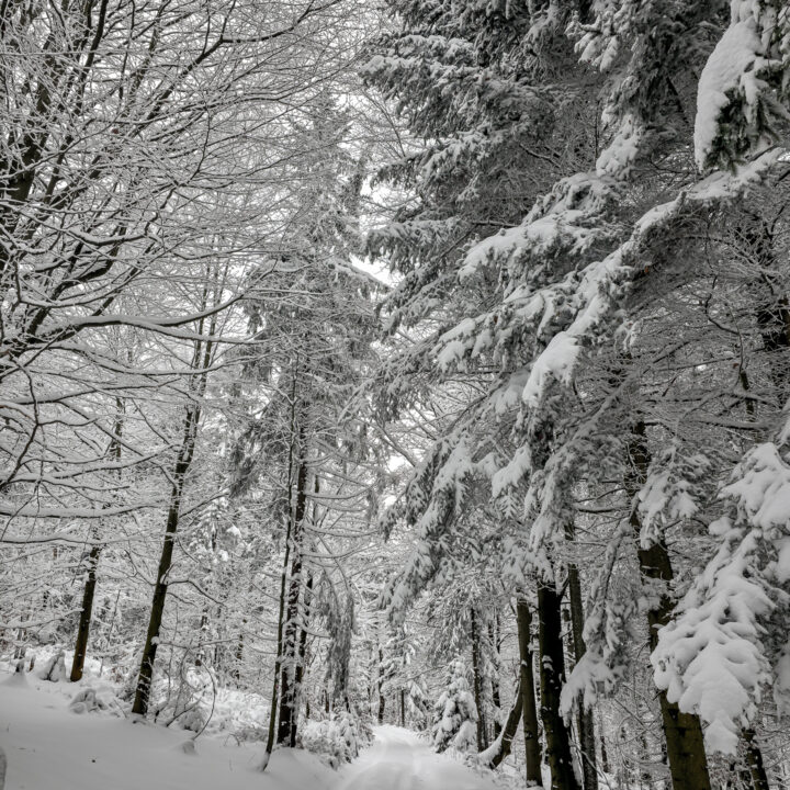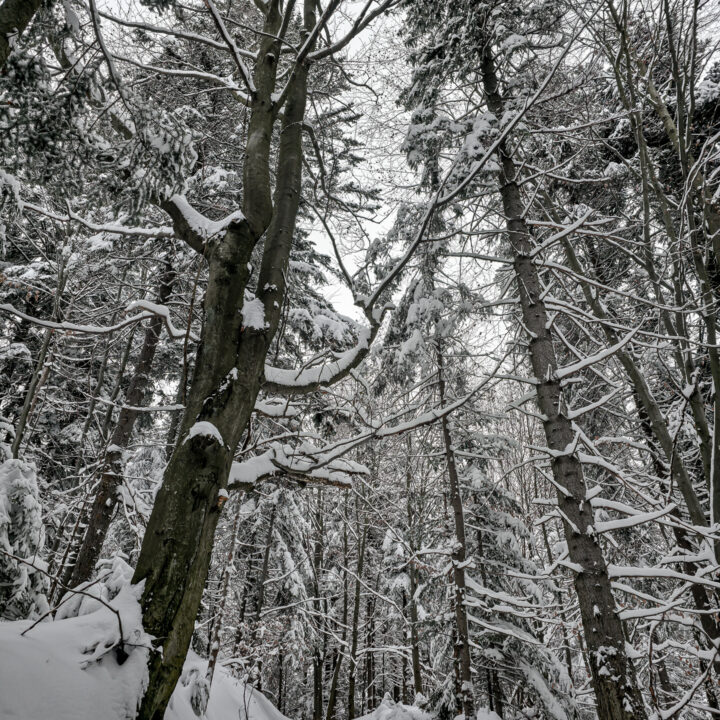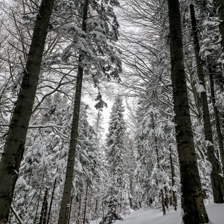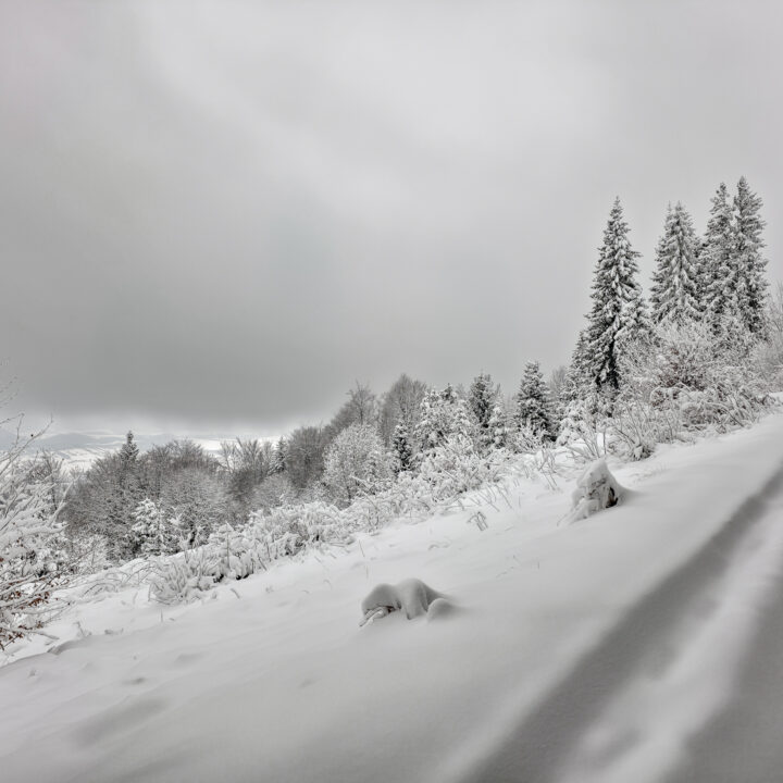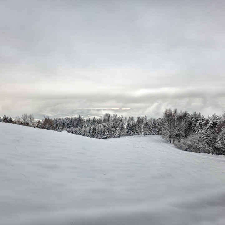 Dwa tygodnie bez gór to wieczność. Mój poziom desperacji wzrósł do tego stopnia, że pomimo fatalnych prognoz (spory mróz, intensywne opady śniegu, pełne zachmurzenie, fatalne warunki na drogach dojazdowych) oraz ostrzeżeń płynących z mediów, żeby niepotrzebnie nie ruszać w góry, uznałem, że to… idealny moment na wyjazd. Bajkowa biała zima, płatki śniegu spadające z nieba, cisza i spokój — idealne warunki na survival na szlaku. Tak właśnie wyobrażałem sobie sobotni poranek. Uznałem, że to idealne warunki na zdobycie szczytu Runek 1004 m n.p.m., który pozostał mi jako ostatni do zdobycia Korony Gorców.