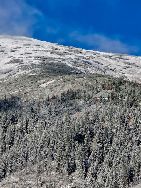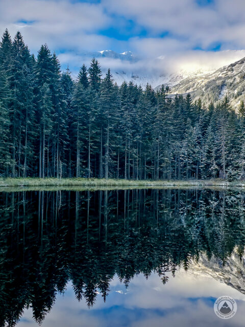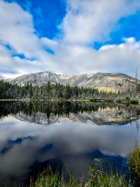 To nie jest punkt na wielką panoramę, tylko na bardziej skupiony, zamknięty kadr. Niewielki staw, świerkowy las i górskie tło tworzą razem widok, który nie imponuje rozmachem, ale ma bardzo wyraźny klimat. Właśnie dlatego Smreczyński Staw robi tak dobre wrażenie mimo niewielkiej skali.