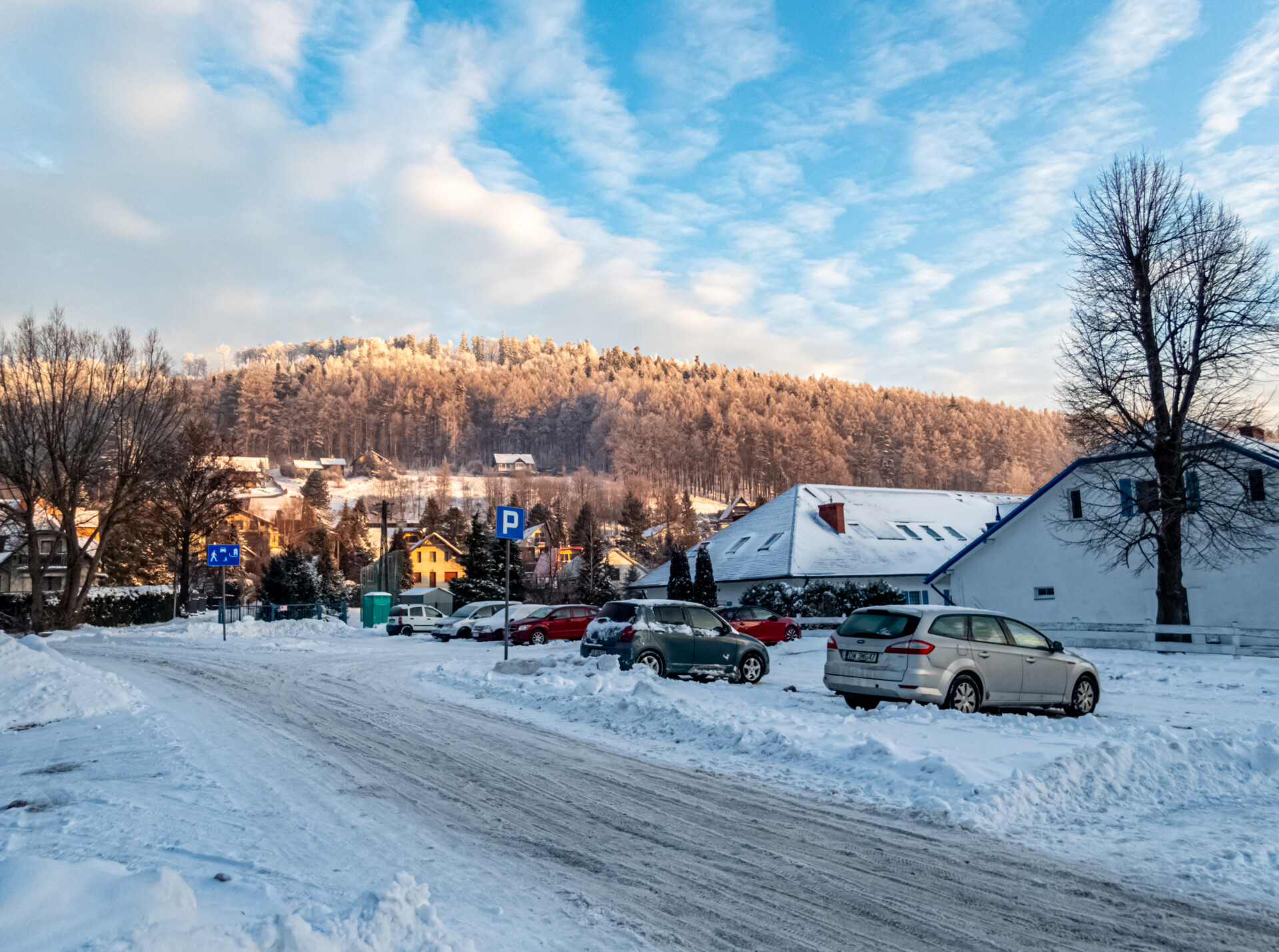 Wyczekiwane okno pogodowe trafiło się 14 stycznia 2025 roku. Skoro świt udałem się na darmowy parking przy ul. Beskidzkiej w Bystrej. Tuż po godzinie ósmej ruszyłem czerwonym szlakiem ku przygodzie.