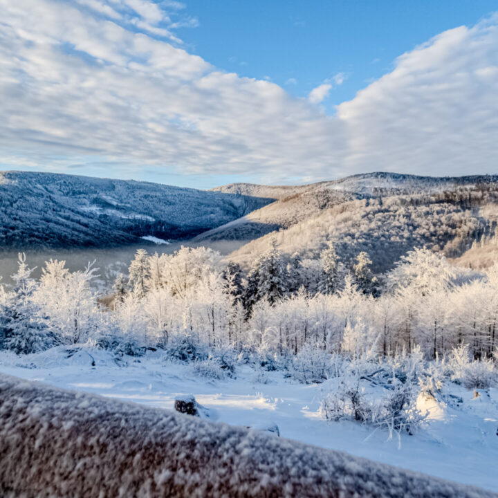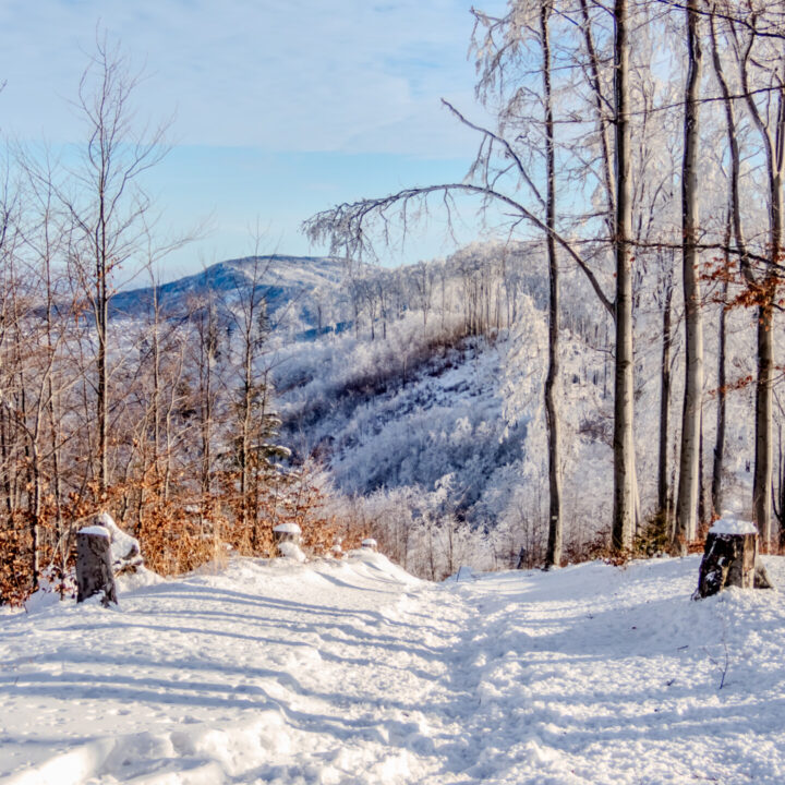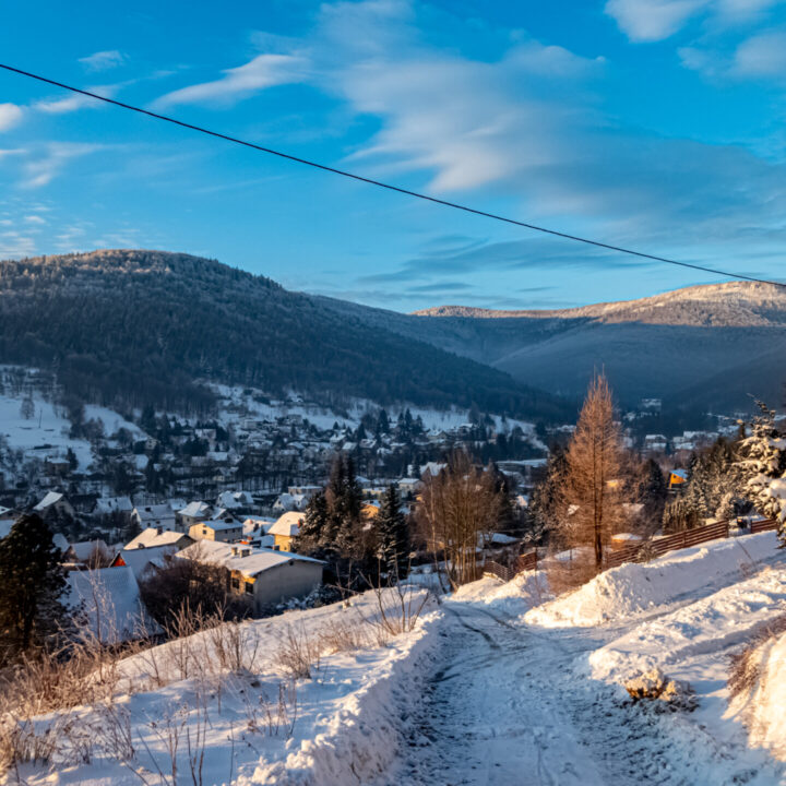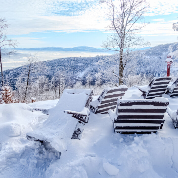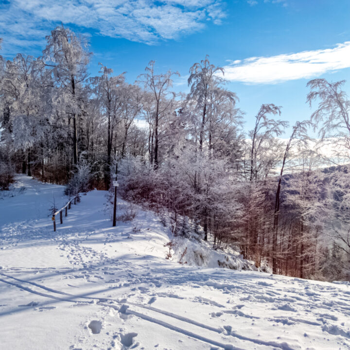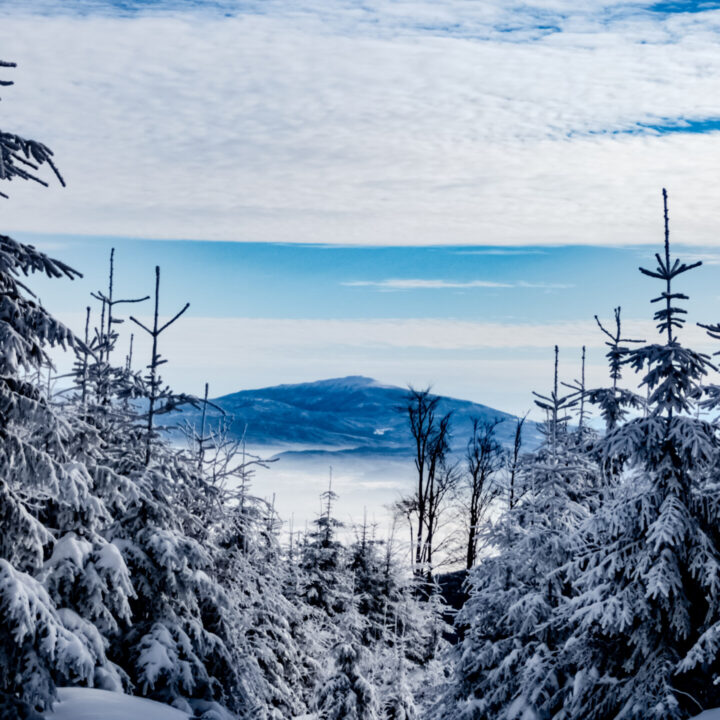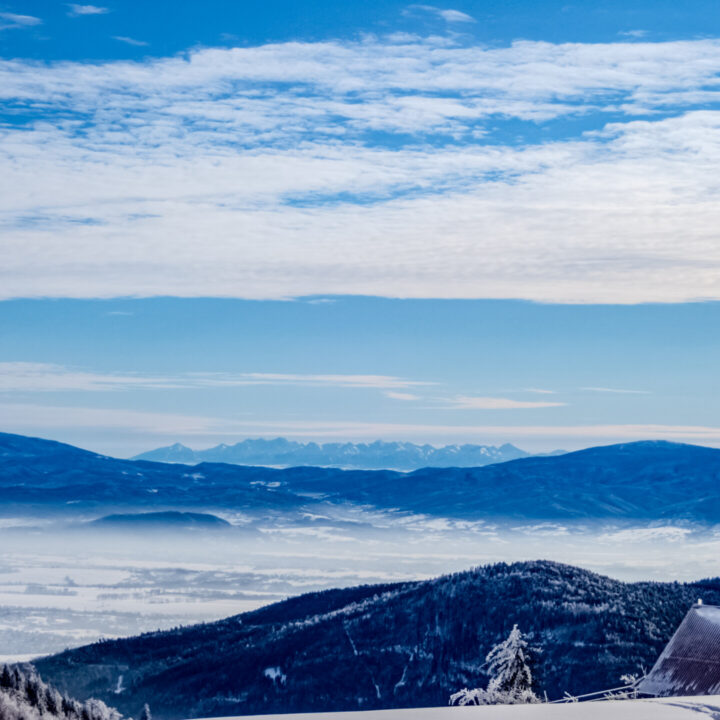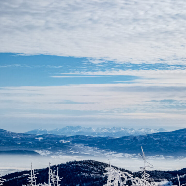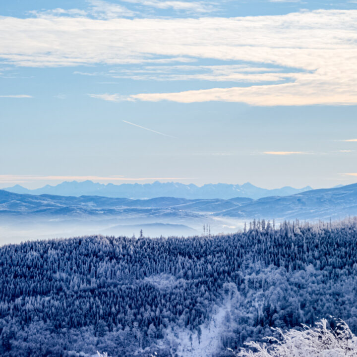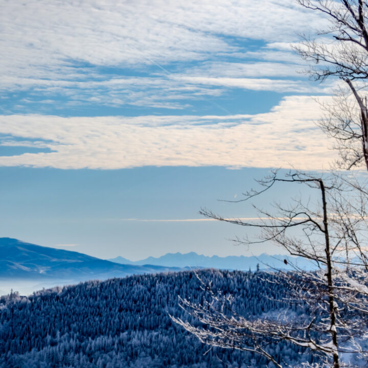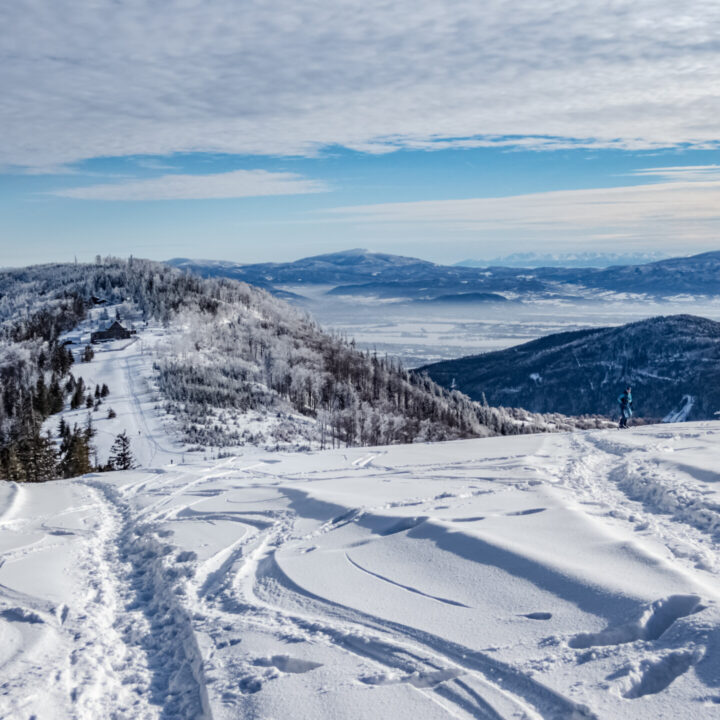 🌄 Widoki – Panorama Tatr, bajkowy błękit nieba, zaśnieżone drzewa i chmury o niezwykłych formach — warunki niemal idealne. Najlepsze punkty widokowe: wieża na Szyndzielni, szczyt Klimczoka i Trzy Kopce.