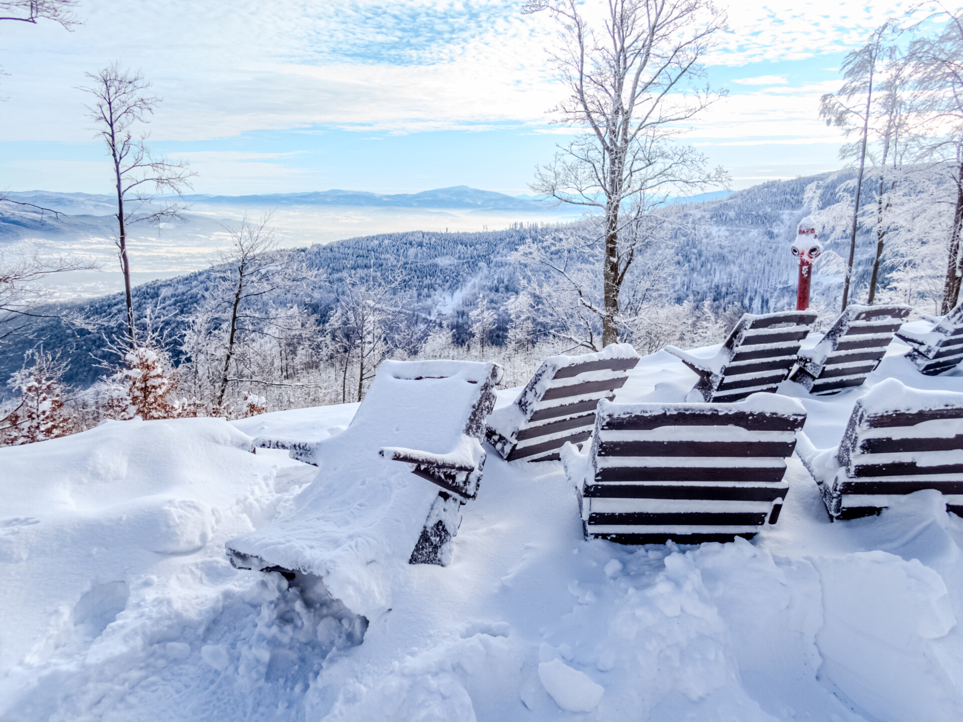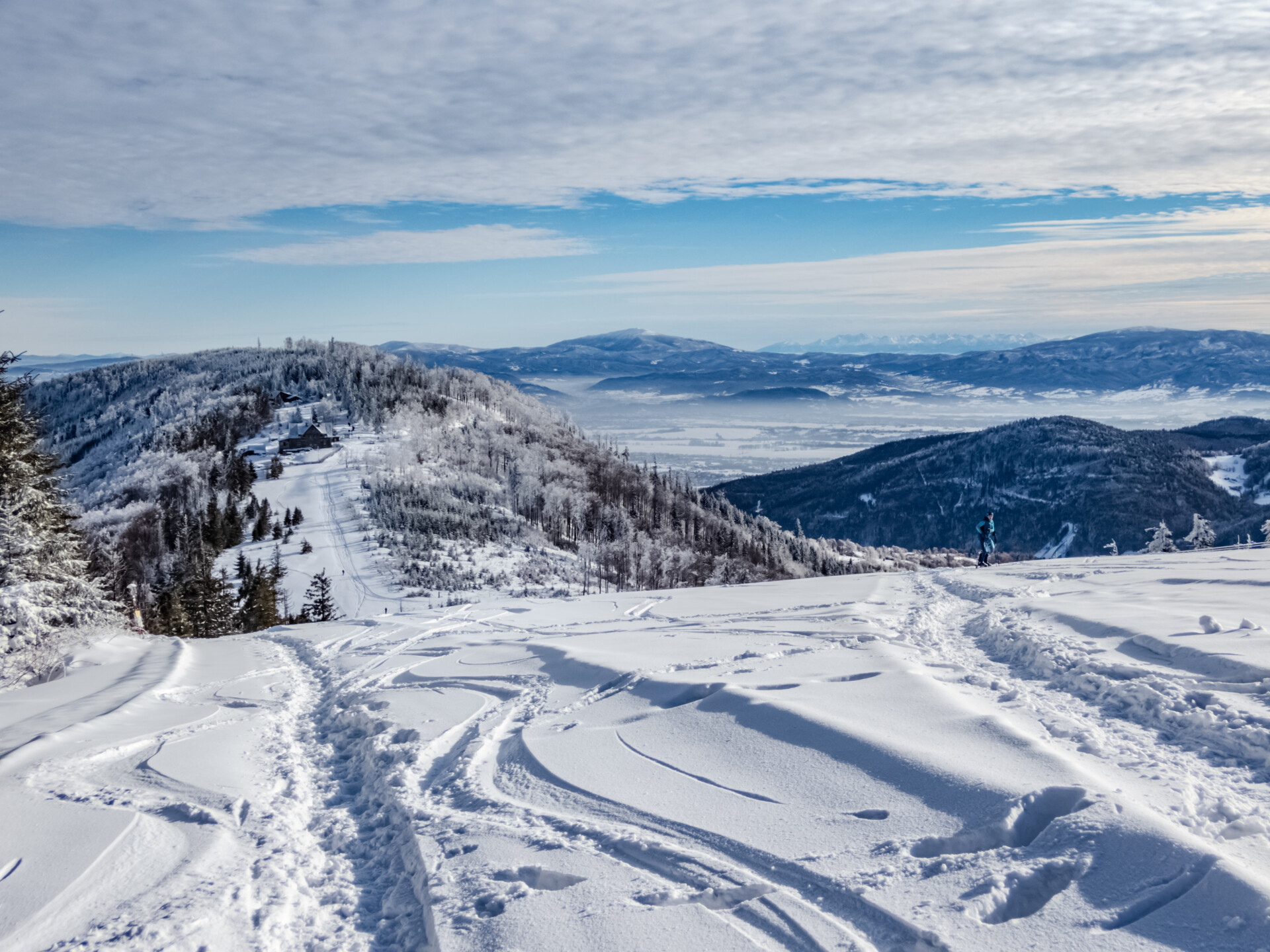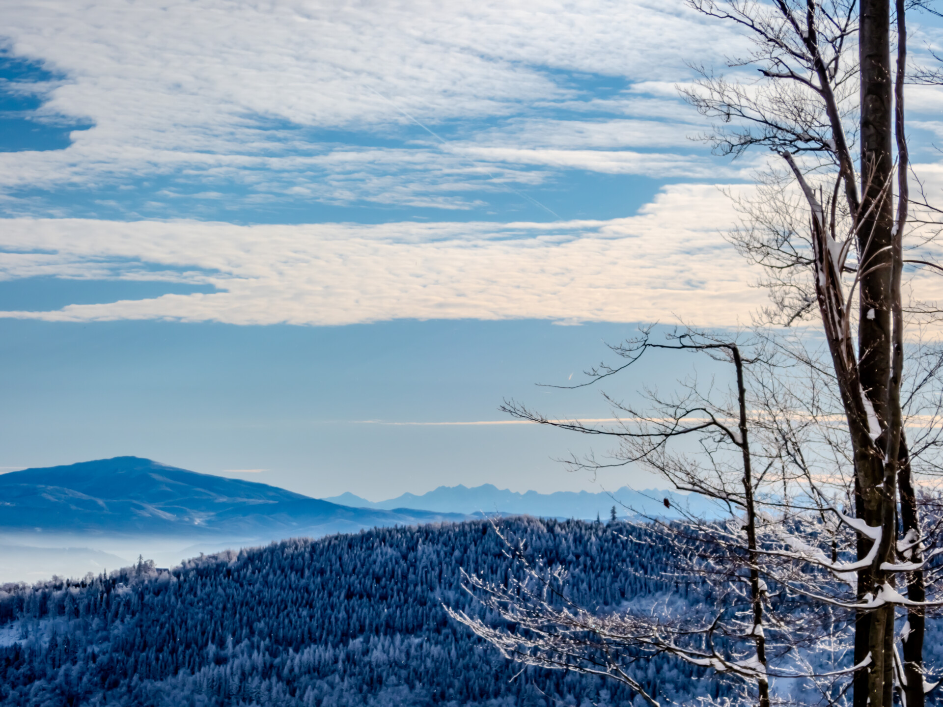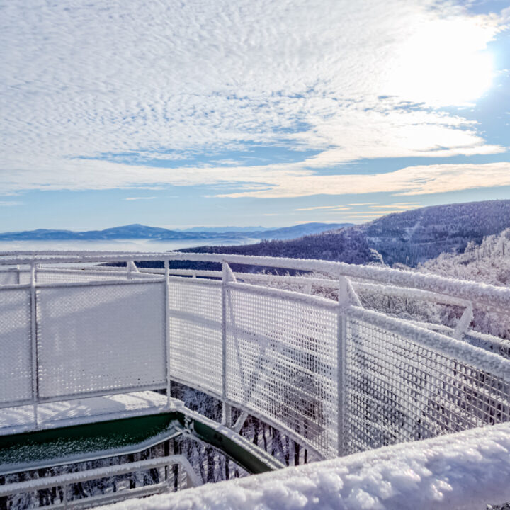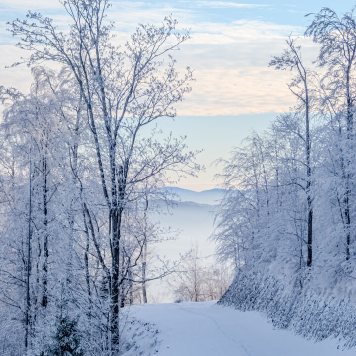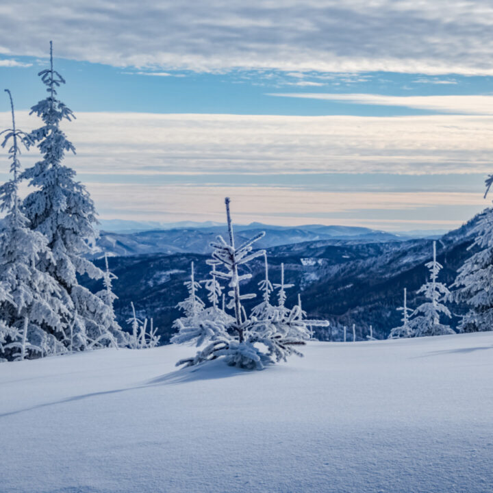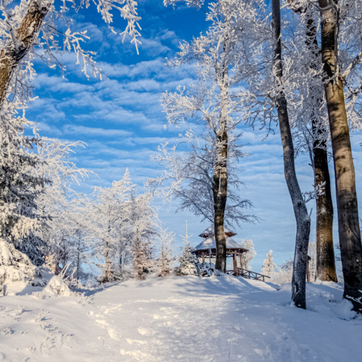 🌄 Widoki – Panorama Tatr, bajkowy błękit nieba, zaśnieżone drzewa i chmury o niezwykłych formach — warunki niemal idealne. Najlepsze punkty widokowe: wieża na Szyndzielni, szczyt Klimczoka i Trzy Kopce.
