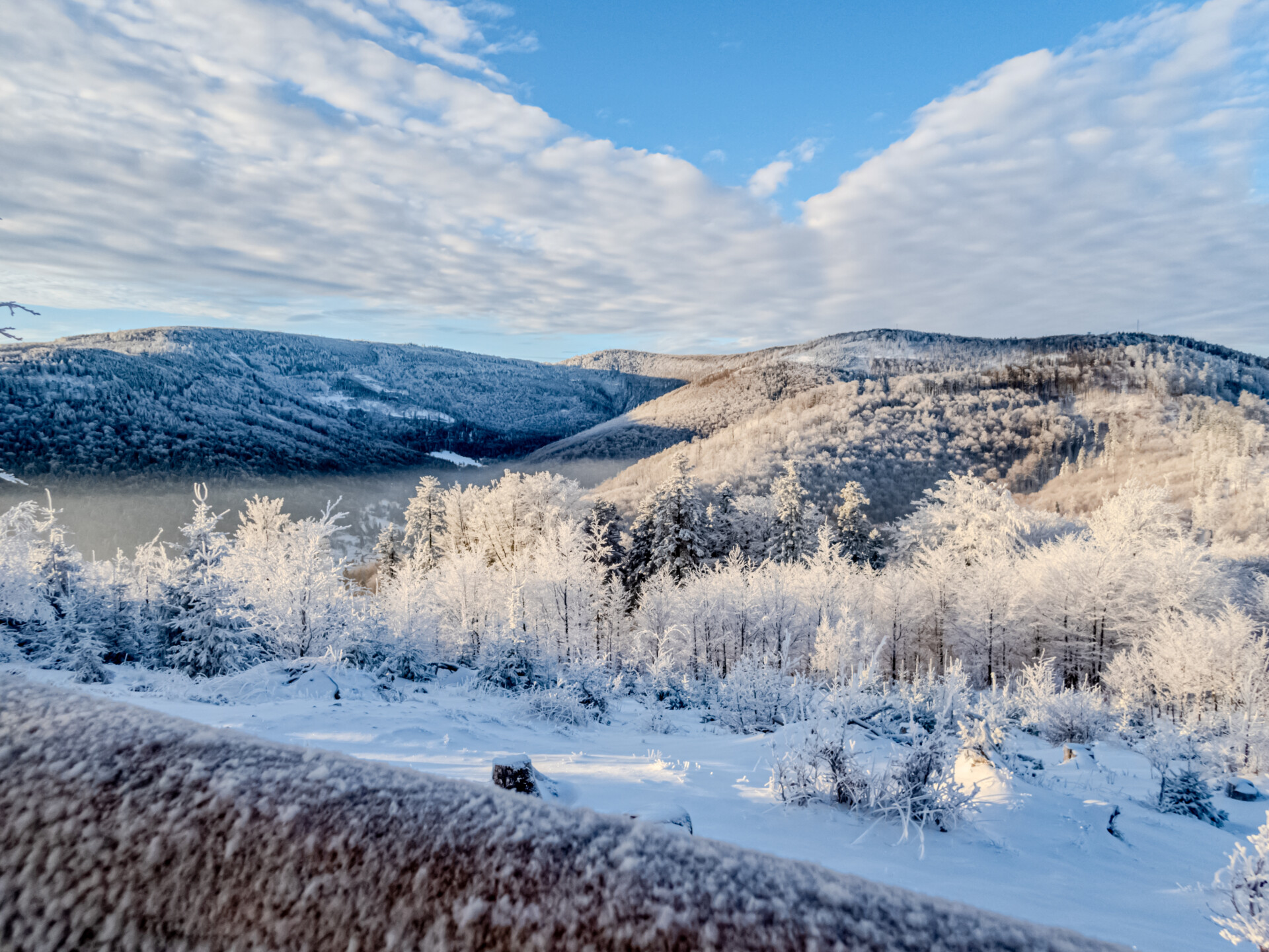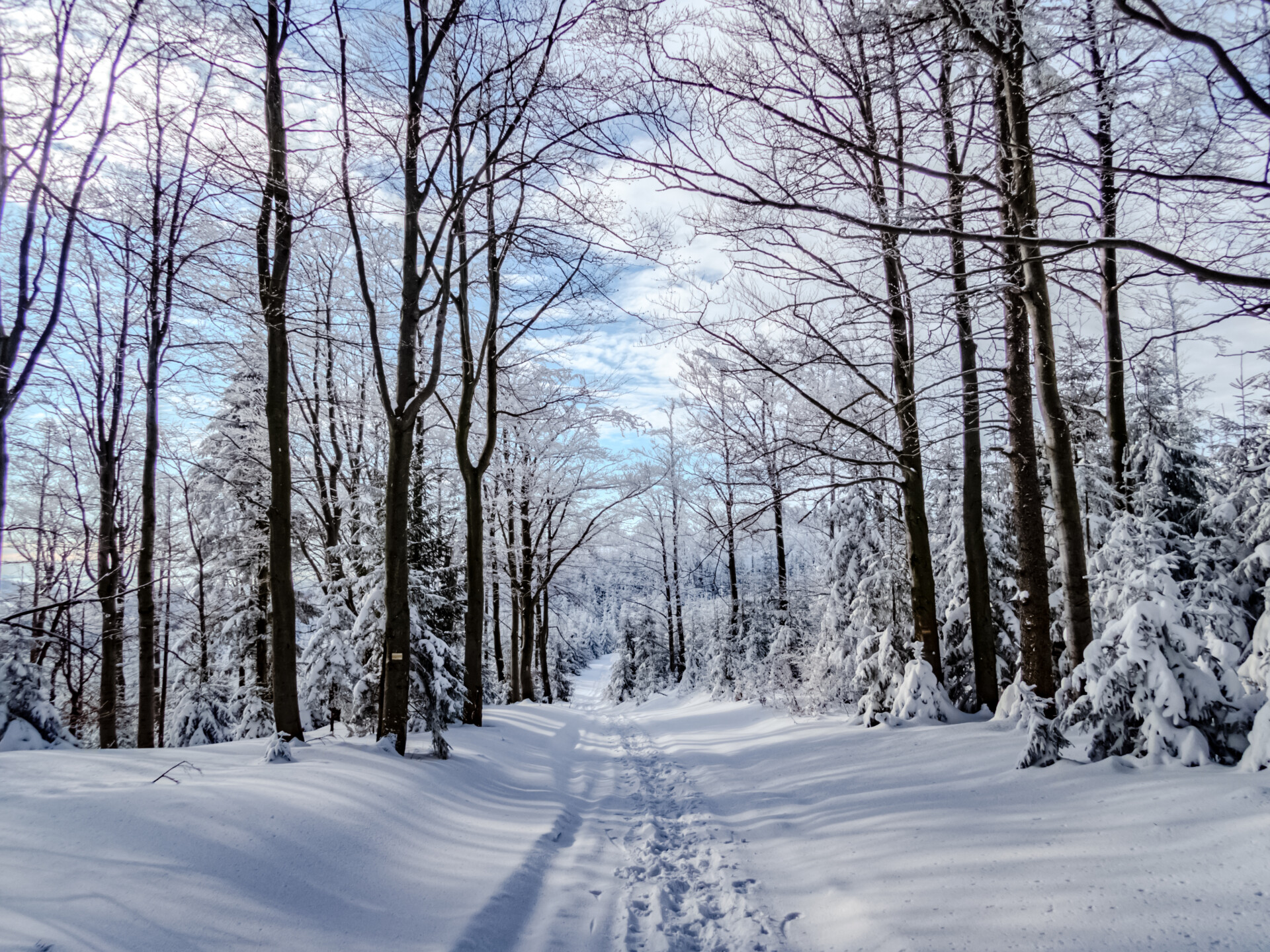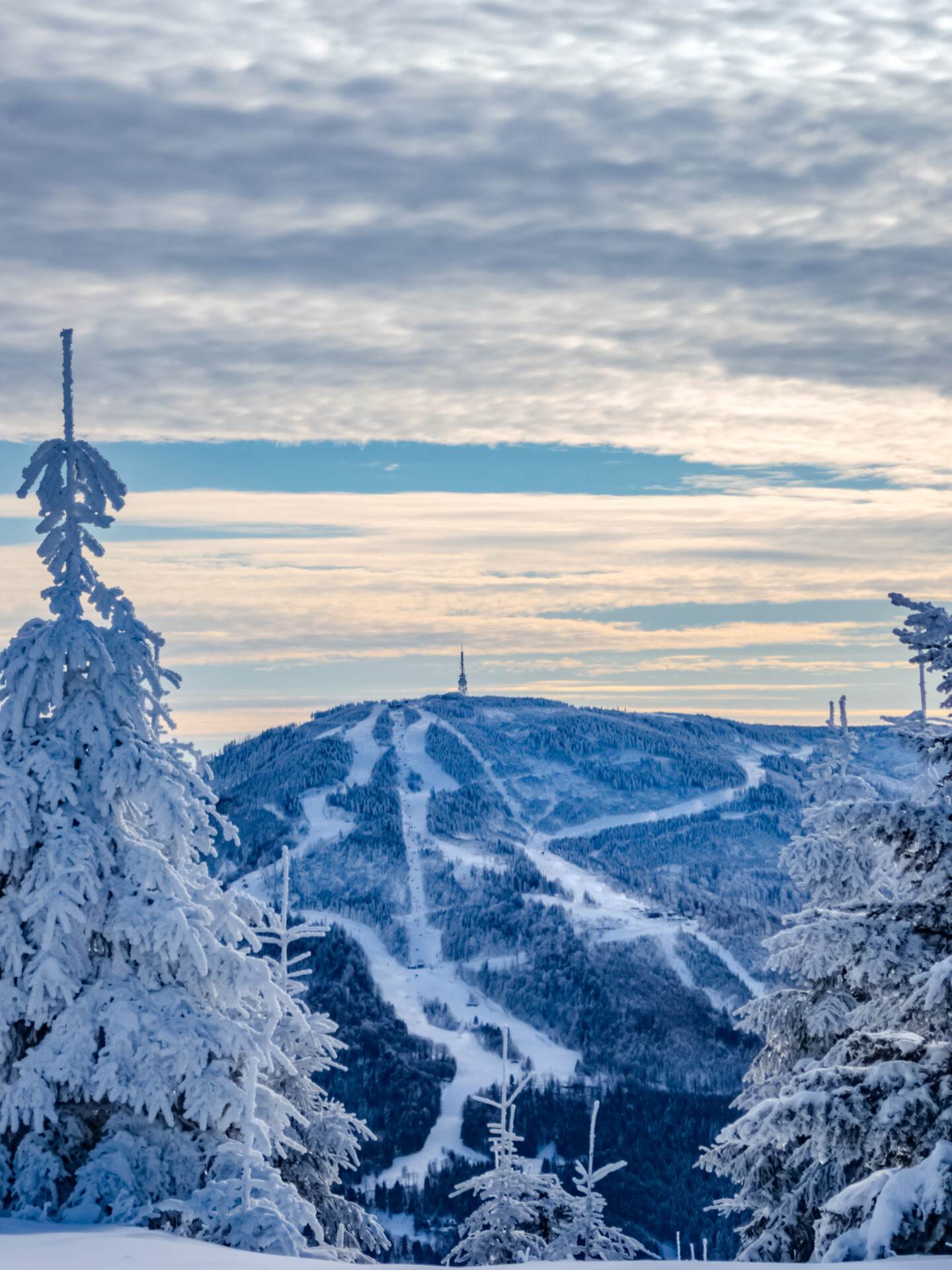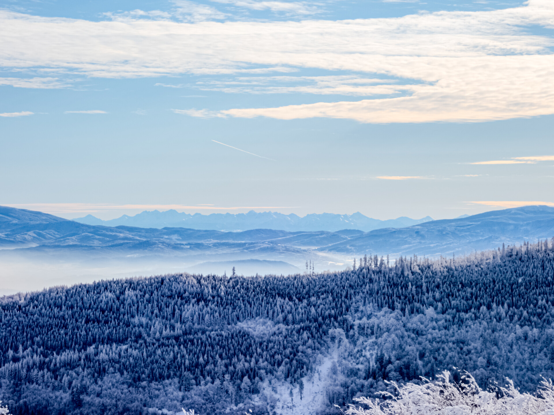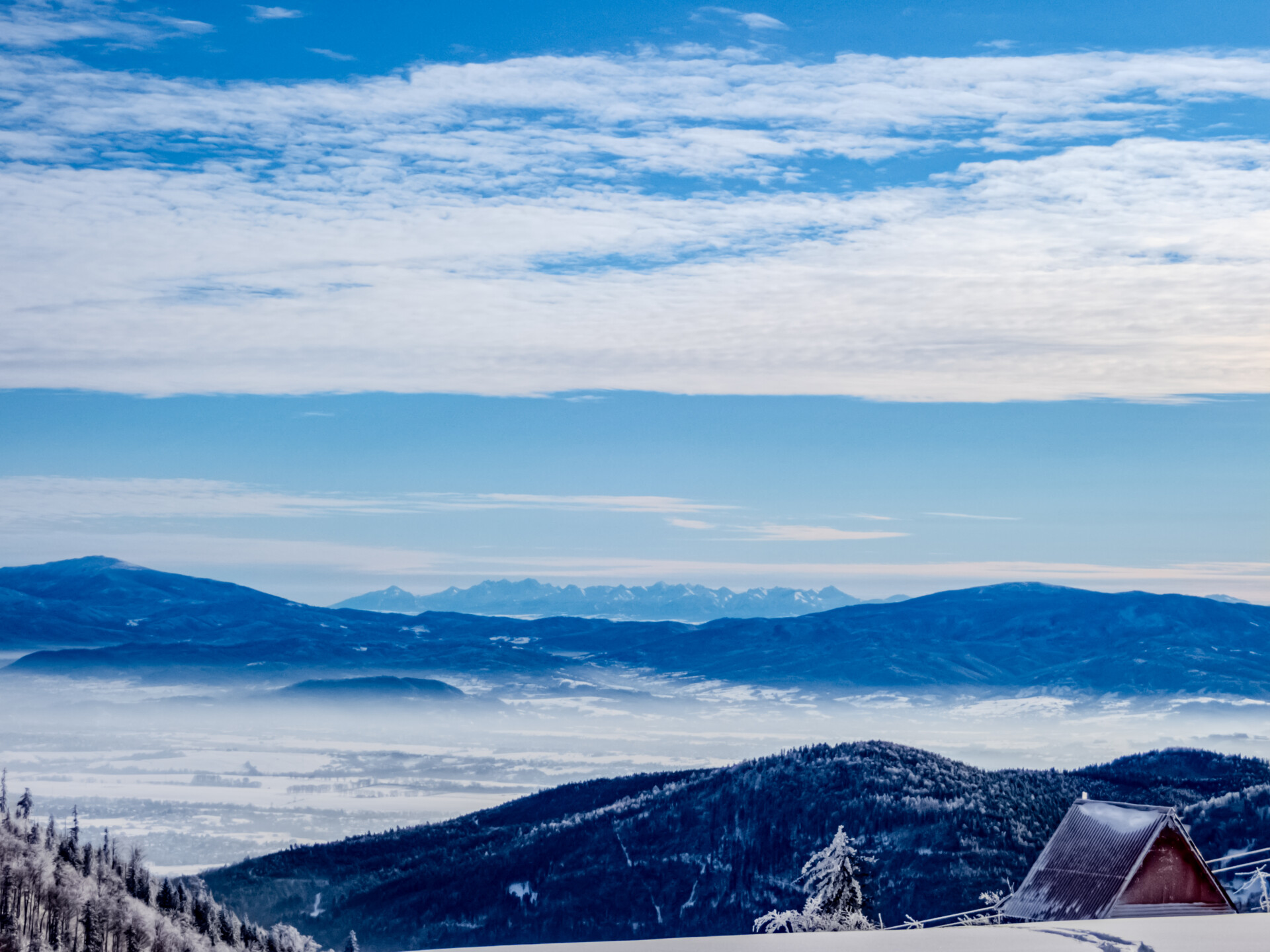 🌄 Widoki – Panorama Tatr, bajkowy błękit nieba, zaśnieżone drzewa i chmury o niezwykłych formach — warunki niemal idealne. Najlepsze punkty widokowe: wieża na Szyndzielni, szczyt Klimczoka i Trzy Kopce.