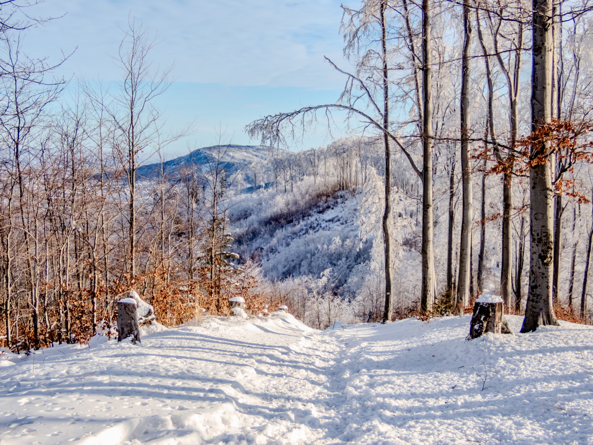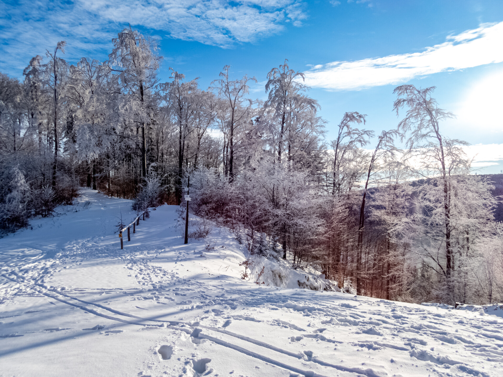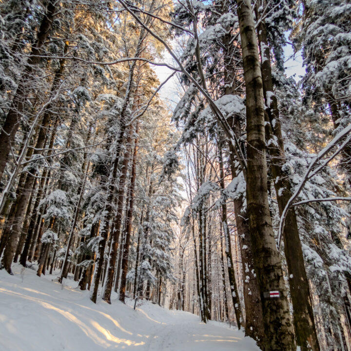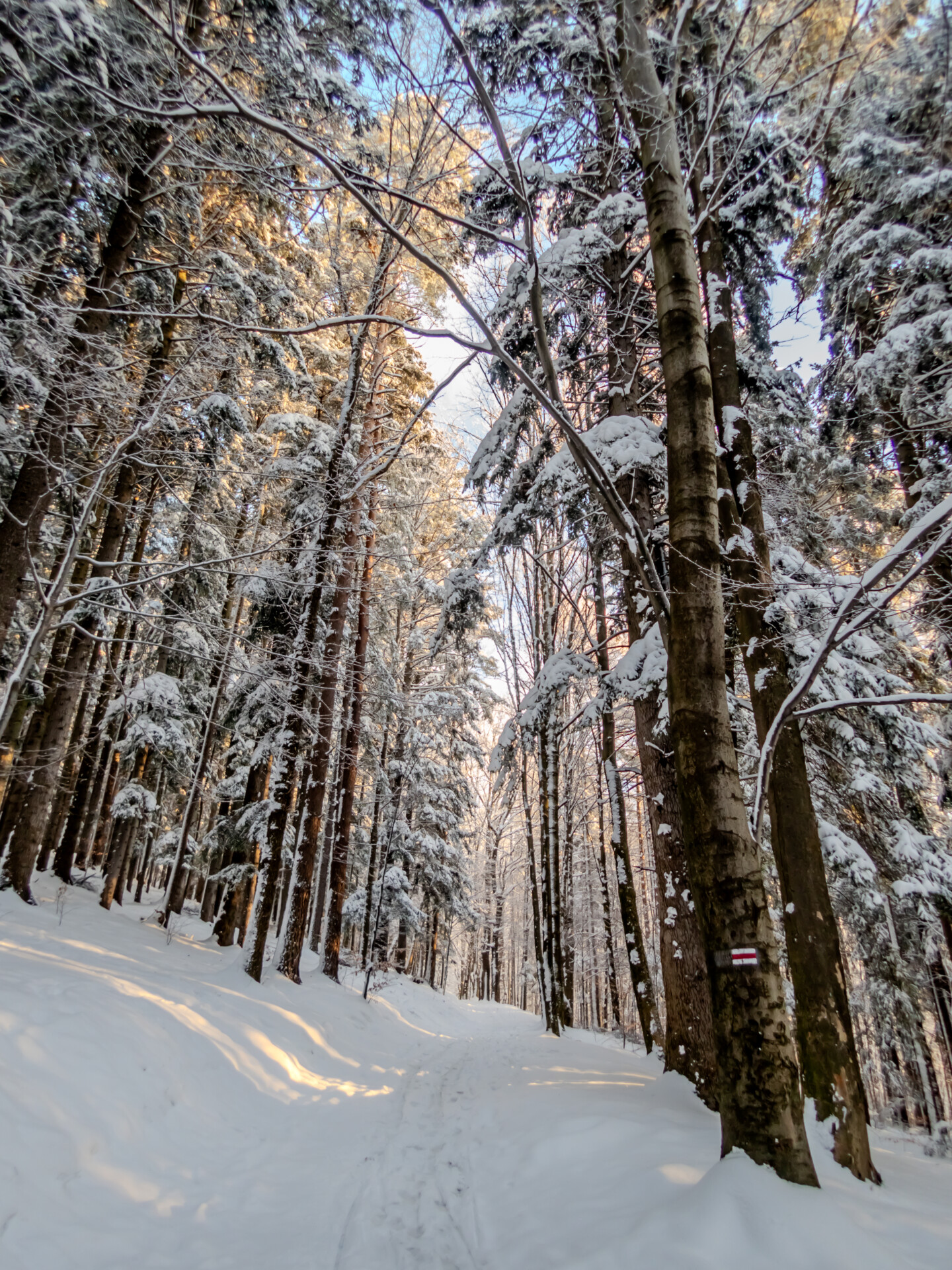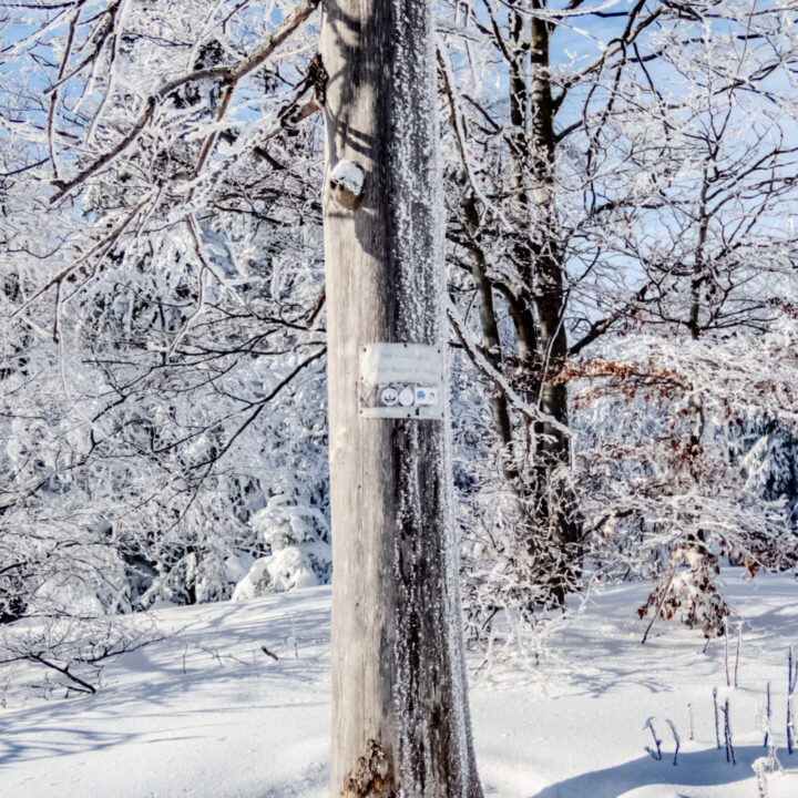 Na powrót wybrałem szlak czerwony przez Magurę (1109 m n.p.m.) – ostatni szczyt z listy. I choć myślałem, że wszystko co dobre już za mną, sceneria odcinka Schronisko → Magura „Kąpielisko” znów mnie zniewoliła. Zdjęcia tylko częściowo oddają tamte chwile. Choć Magura była już 12. kilometrem śnieżnej trasy, szło mi się doskonale. Wspinaczek już prawie nie było, a końcówka to głównie zejście.