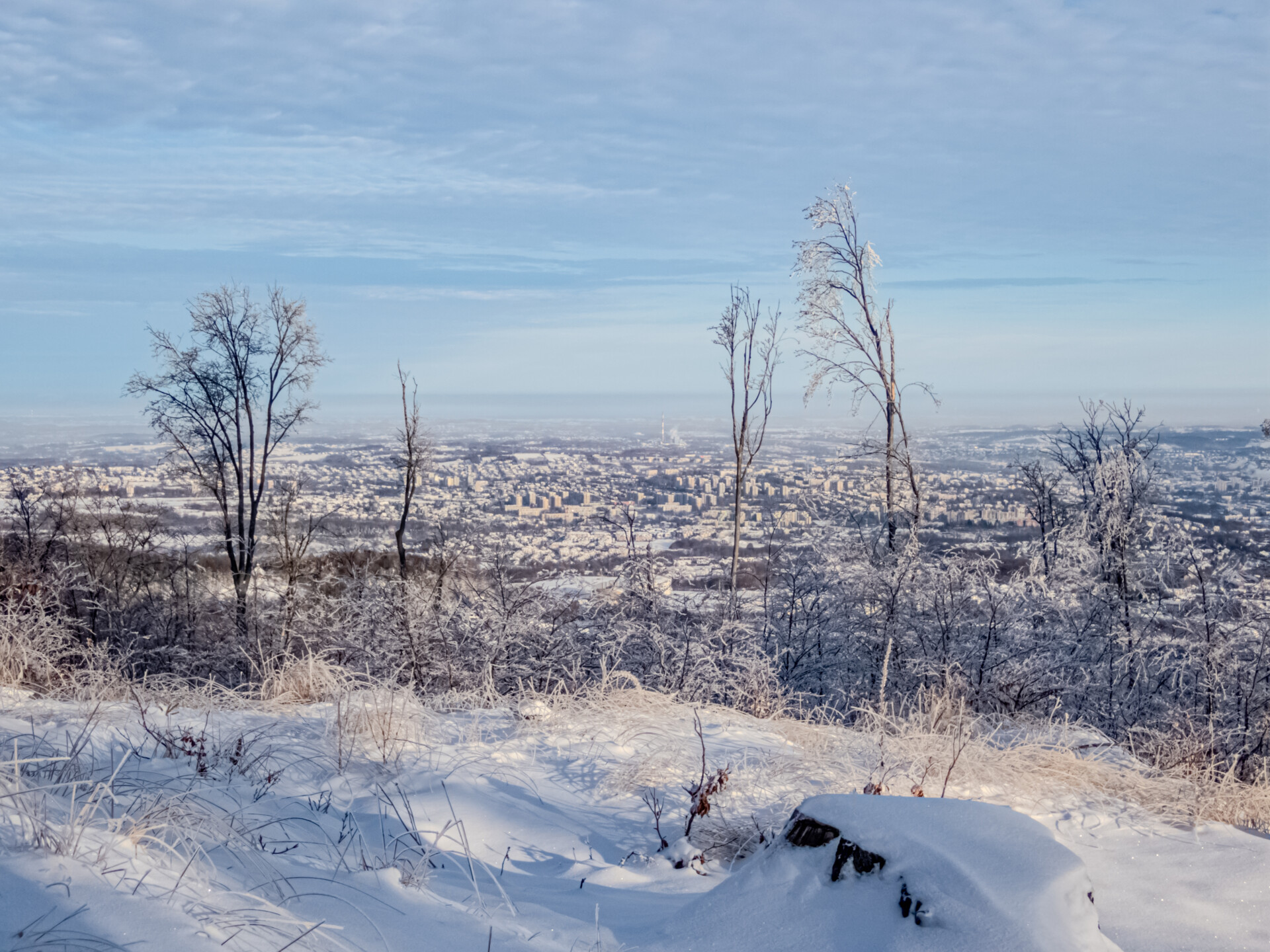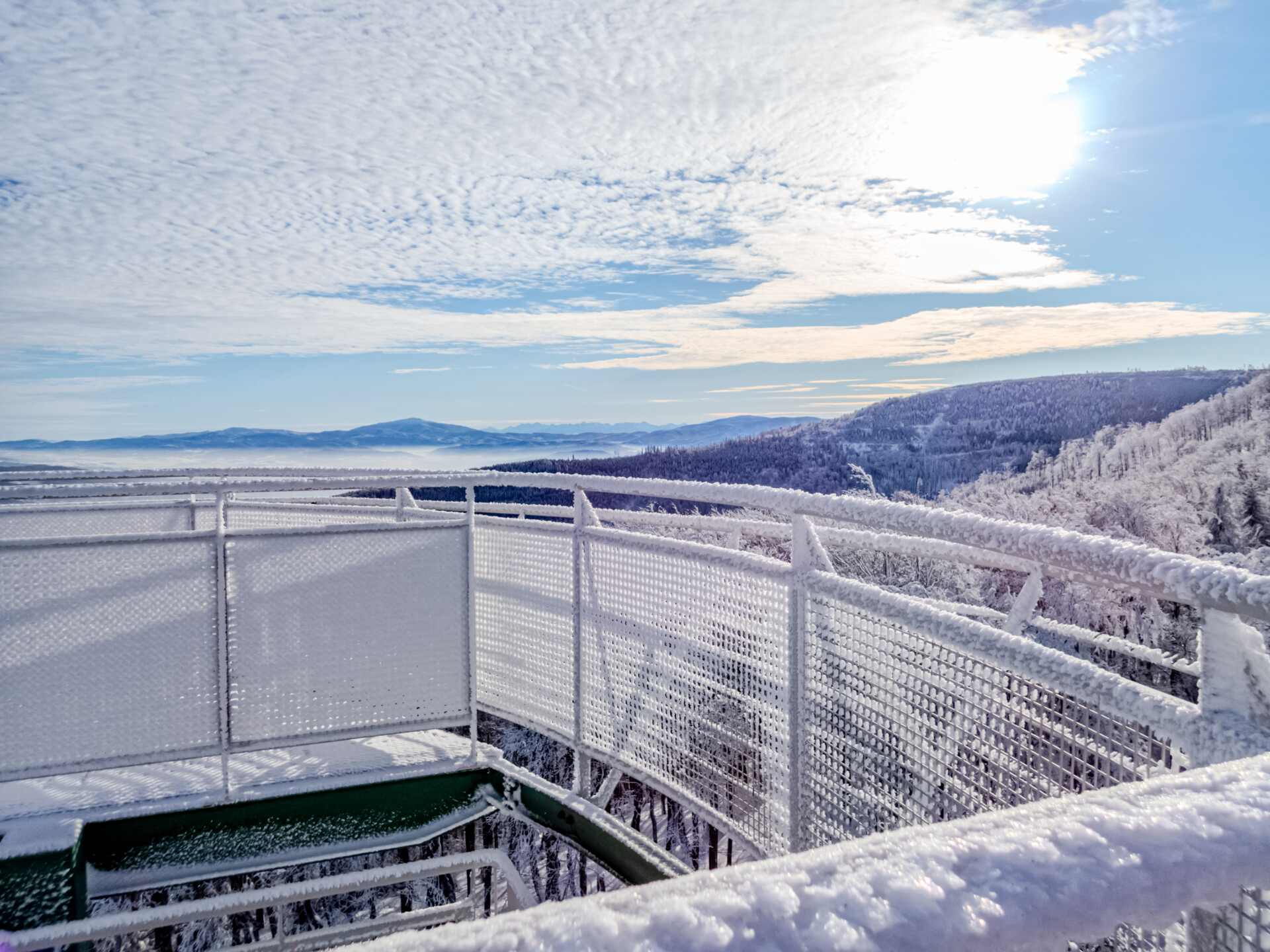 Na miejscu wspiąłem się na całkowicie zamarzniętą i ośnieżoną metalową wieżę widokową. Oczywiście, jak to na wysokości – poczułem się nieswojo, ale widok Tatr ukoił moje rozdygotane serce. Dotarcie tu zajęło mi 2 godziny.