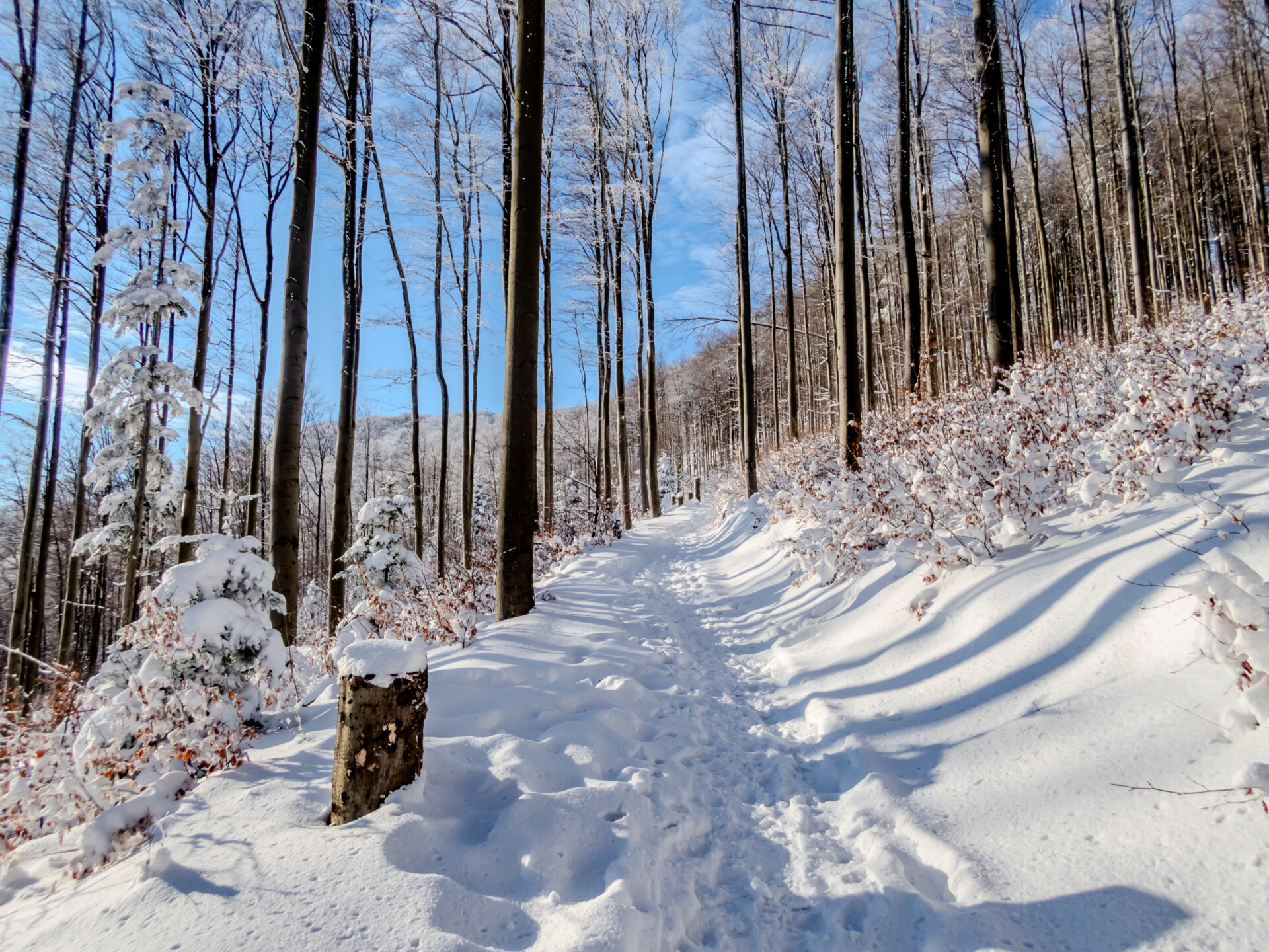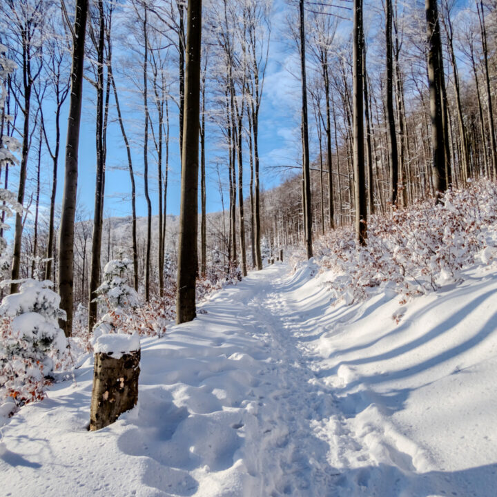 🔹 Zimą trasa wymaga dobrej kondycji – śnieg po kolana znacząco zwiększa wysiłek.