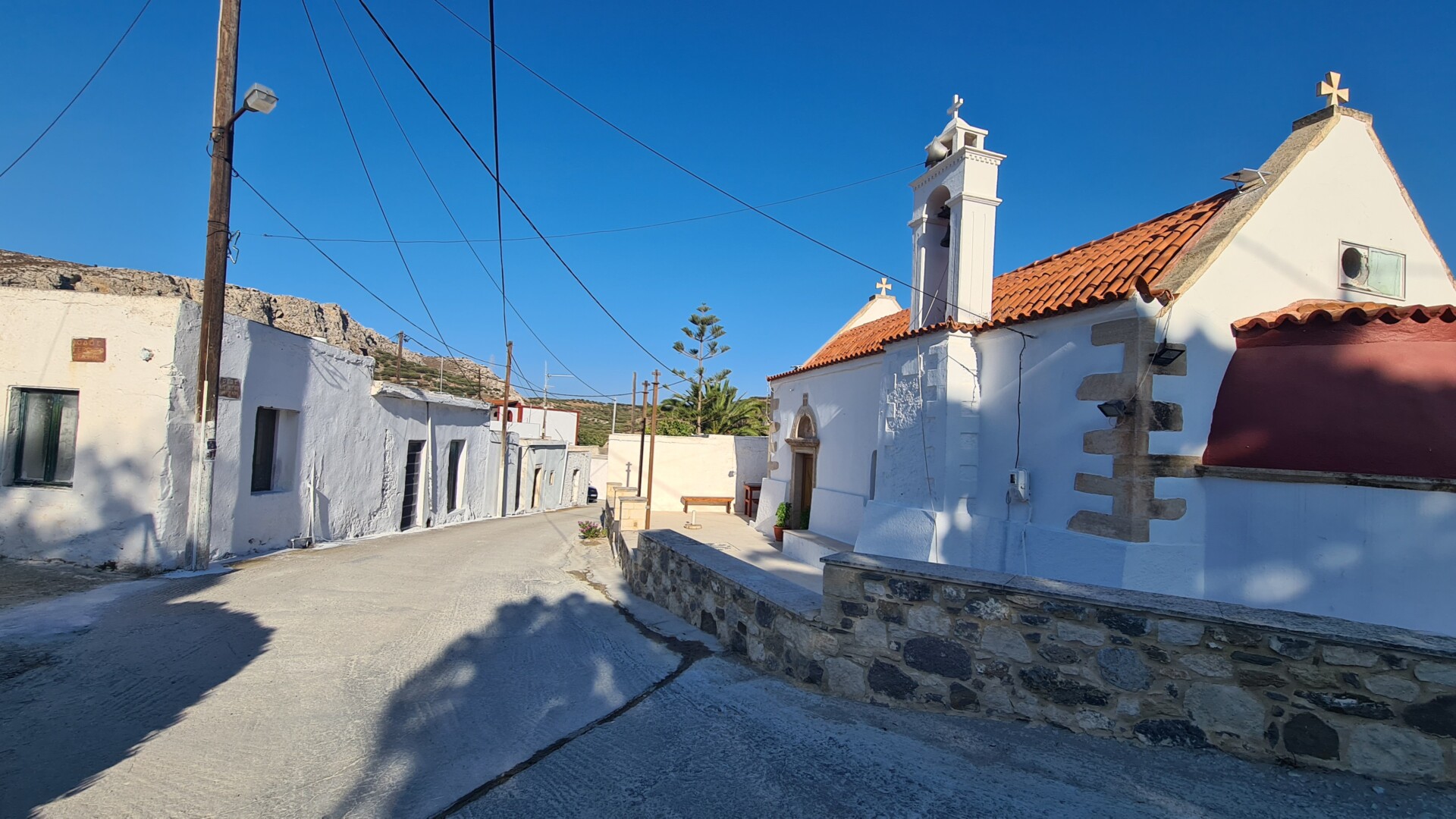 📍 Start i parking – Trasa rozpoczyna się przy klasztorze Moni Kapsa, położonym tuż nad Morzem Libijskim. Możliwość zaparkowania tuż obok klasztoru – kilka miejsc wzdłuż drogi.