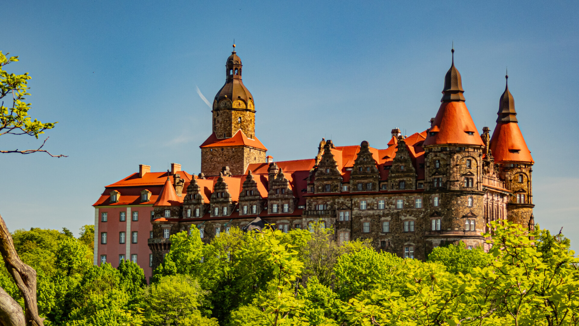 Punkty widokowe z panoramą na Zamek Książ – częściowo przysłonięte koronami drzew. Najlepszy widok z nieoznakowanego punktu w połowie drogi powrotnej (GPS niezbędny).