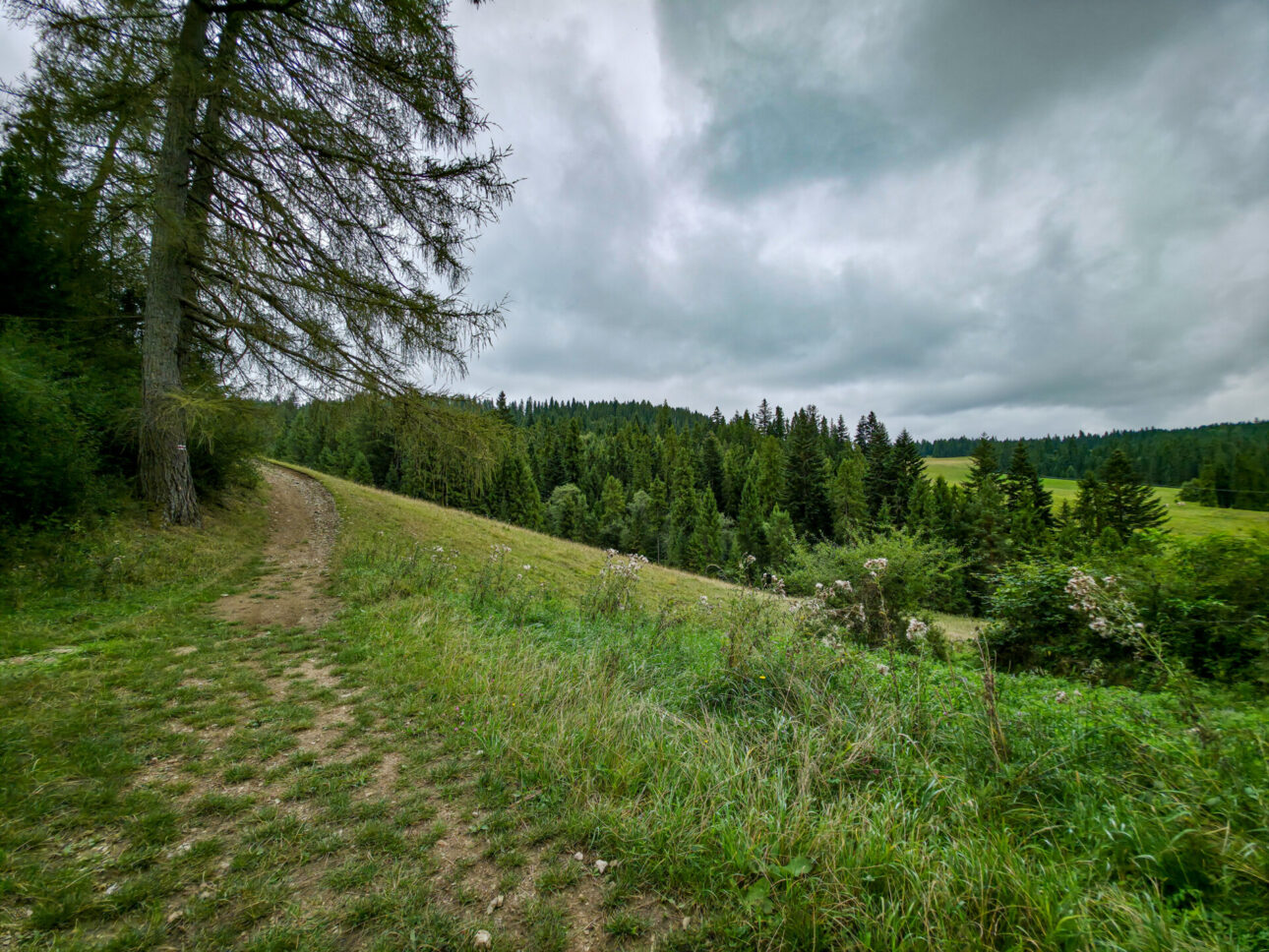 Całość trasy zajęła nam spokojnym tempem niecałe 4,5 godziny. Na całej trasie spotkaliśmy jednego quada poruszającego się (sic!) po czerwonym szlaku w rejonie Szumne oraz trójkę turystek przed Cisówką. Jak na blisko 14 kilometrów szlaku to praktycznie zerowy ruch. Nie wiem czy z powodu niepewnej pogody, zakończonych właśnie wakacji, a może braku popularności tego szlaku (a może wszystko razem), ale jedno wiem na pewno – szlak ma kilka „momentów” i gdyby pogoda oraz widoczność dopisały, byłby to panoramiczny sztos. Widoki z Grandeusa, z Polany Wapienne, z Hali Cisówka i punktu widokowego Nad Tabor z miłą chęcią bym zobaczył ponownie – tym razem przy pełnej współpracy z bezkresnym niebem i wyrazistymi Tatrami w tle.