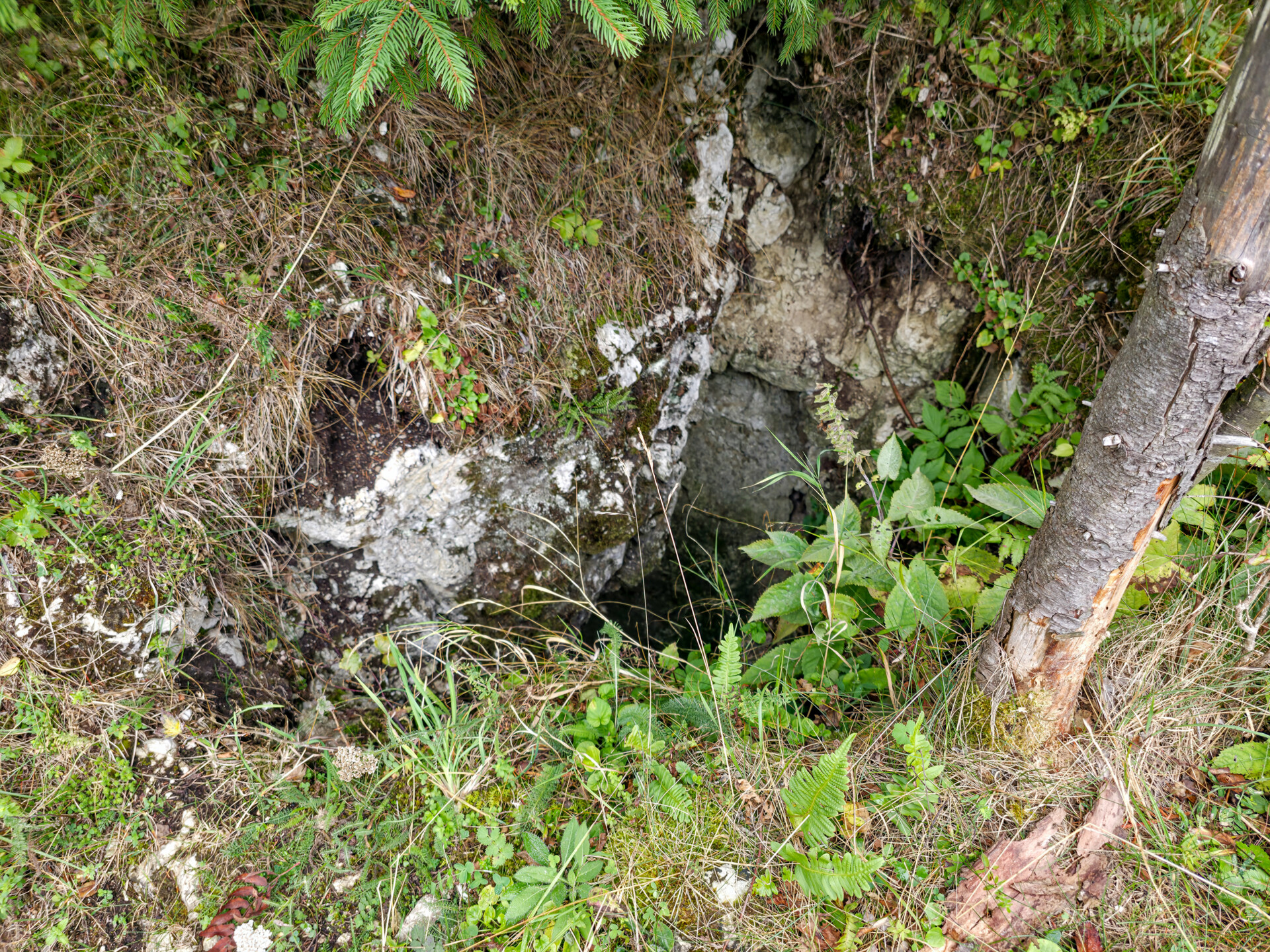 Tuż przed dotarciem na szczyt góry Żar, po lewej stronie przy samym szlaku znajduje się „Schronisko w Żarze” inaczej nazywane „Dziura Mutiego”. To nic innego jak skalny komin o wysokości kilku metrów. Problem polega na tym, że zaraz obok znajduje się mała skalna wychodnia, z której rozpościera się widok w kierunku Gorców. Jeśli przez nieuwagę nie zauważysz Dziury Mutiego (gdybym nie wiedział, że mam się jej tam spodziewać, mógłbym jej nie zauważyć) możesz sobie zrobić sporą krzywdę. W dniu w którym tam byliśmy przed otworem była wbita niska złamana żerdź, na której najpewniej wcześniej była umieszczona jakaś tabliczka ostrzegawcza. Jednym słowem, zachowajcie ostrożność w tym miejscu!
