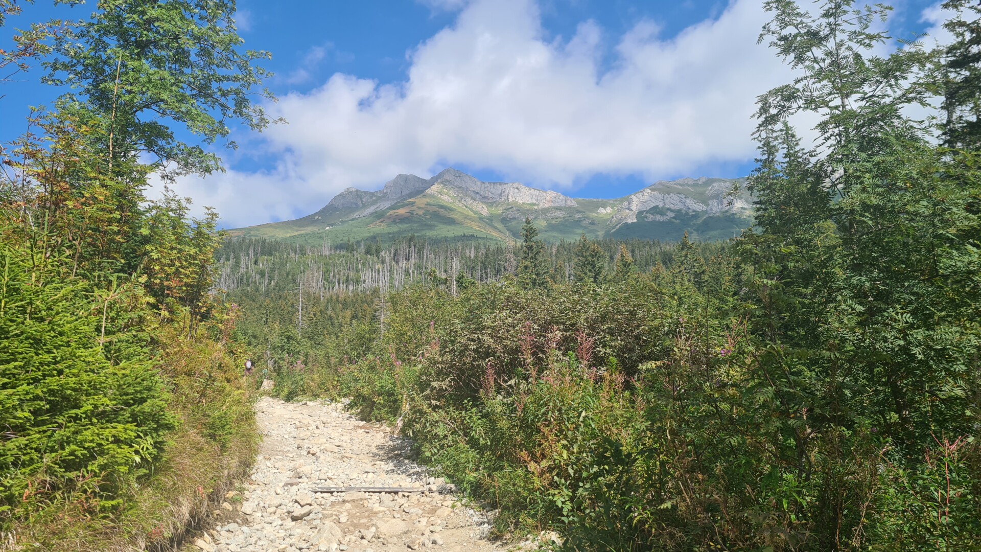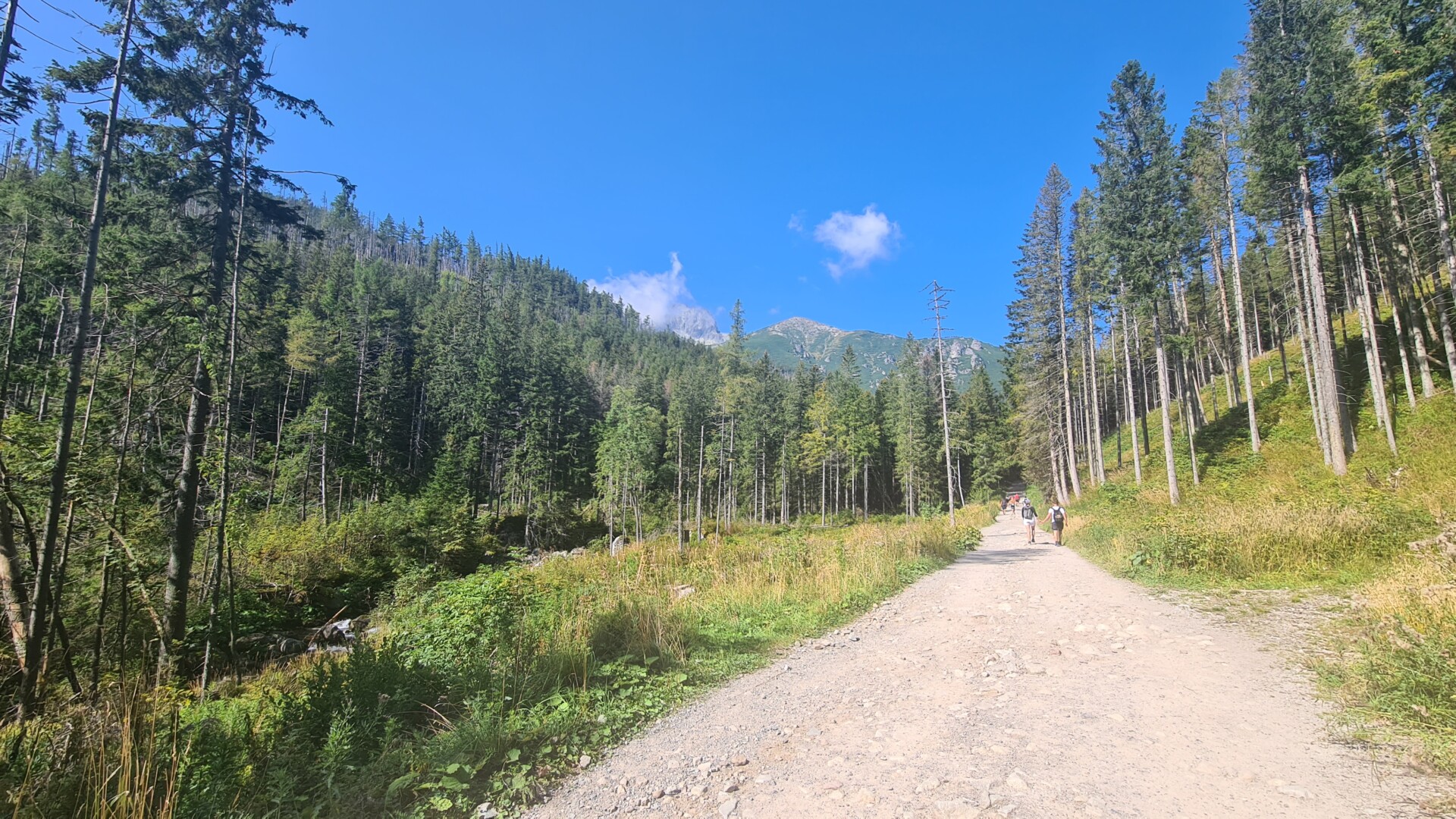 Plan był prosty – start z parkingu Biela Voda. Problem w tym, że w niedzielny poranek o 9:00 nie było już wolnego miejsca. Piękna pogoda przyciągnęła tłumy. A że parkować można tylko na wyznaczonych parkingach, skończyło się objazdem do Tatrzańskiej Łomnicy i powrotem autobusem na miejsce startu. Bonus? Pierwszy raz zobaczyłem kolejkę na Łomnicę. Ale o tym innym razem.